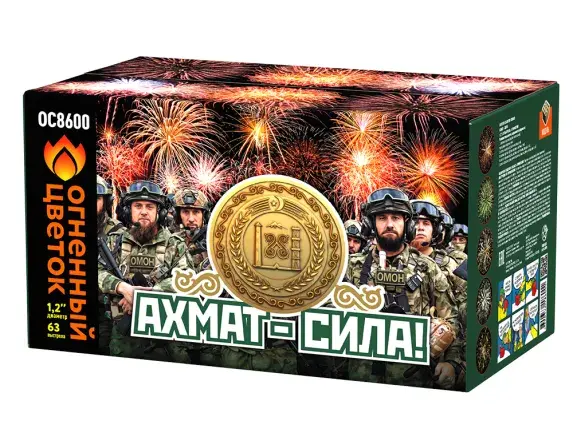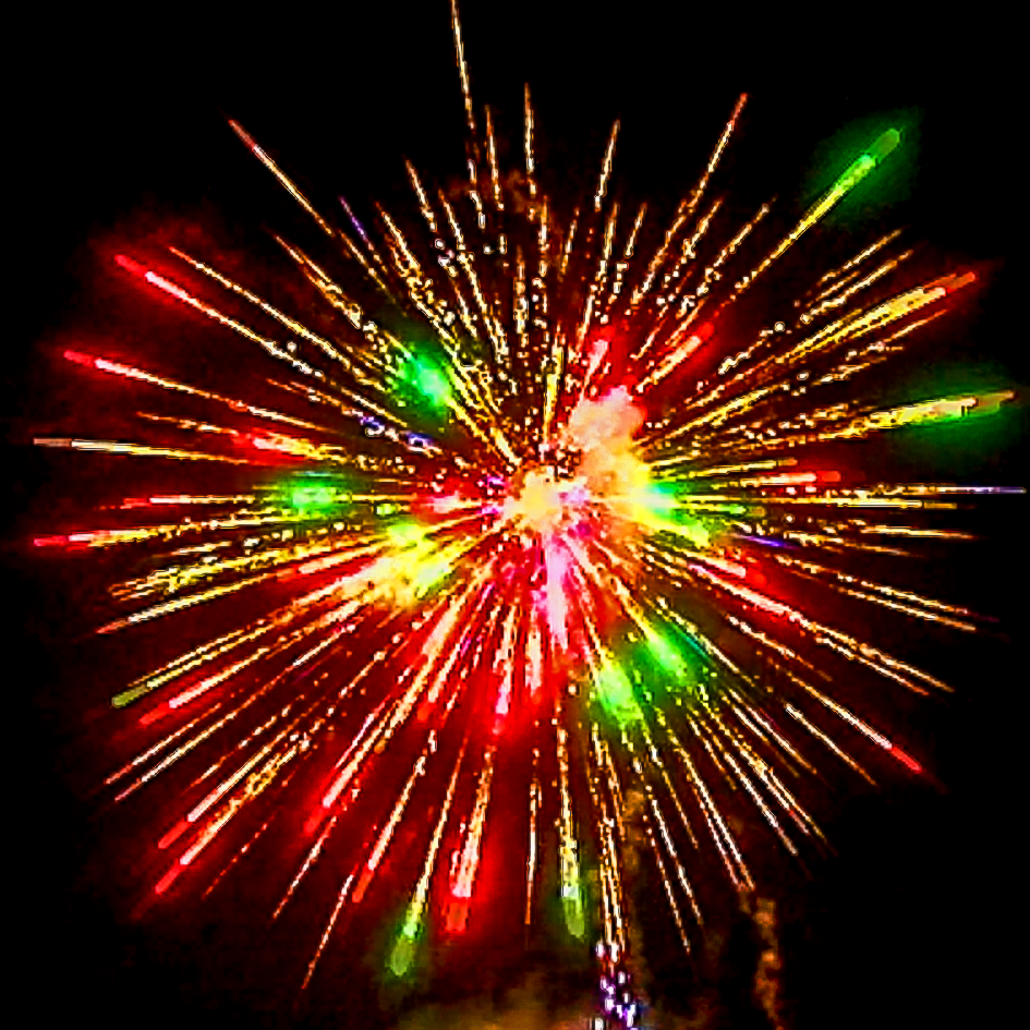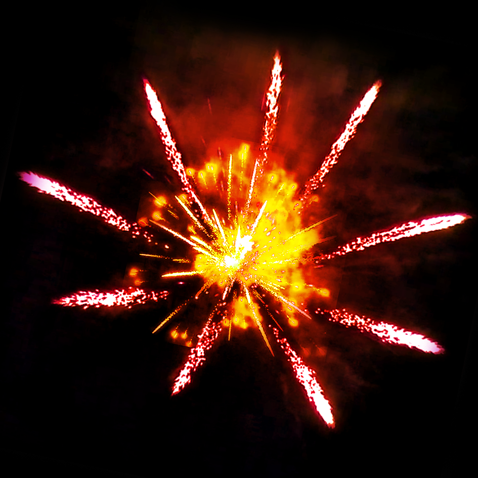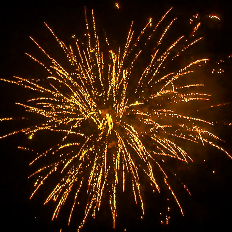 5. золотых форсов с трещащими искрами на концах и зелёных мерцающих огней (залп).