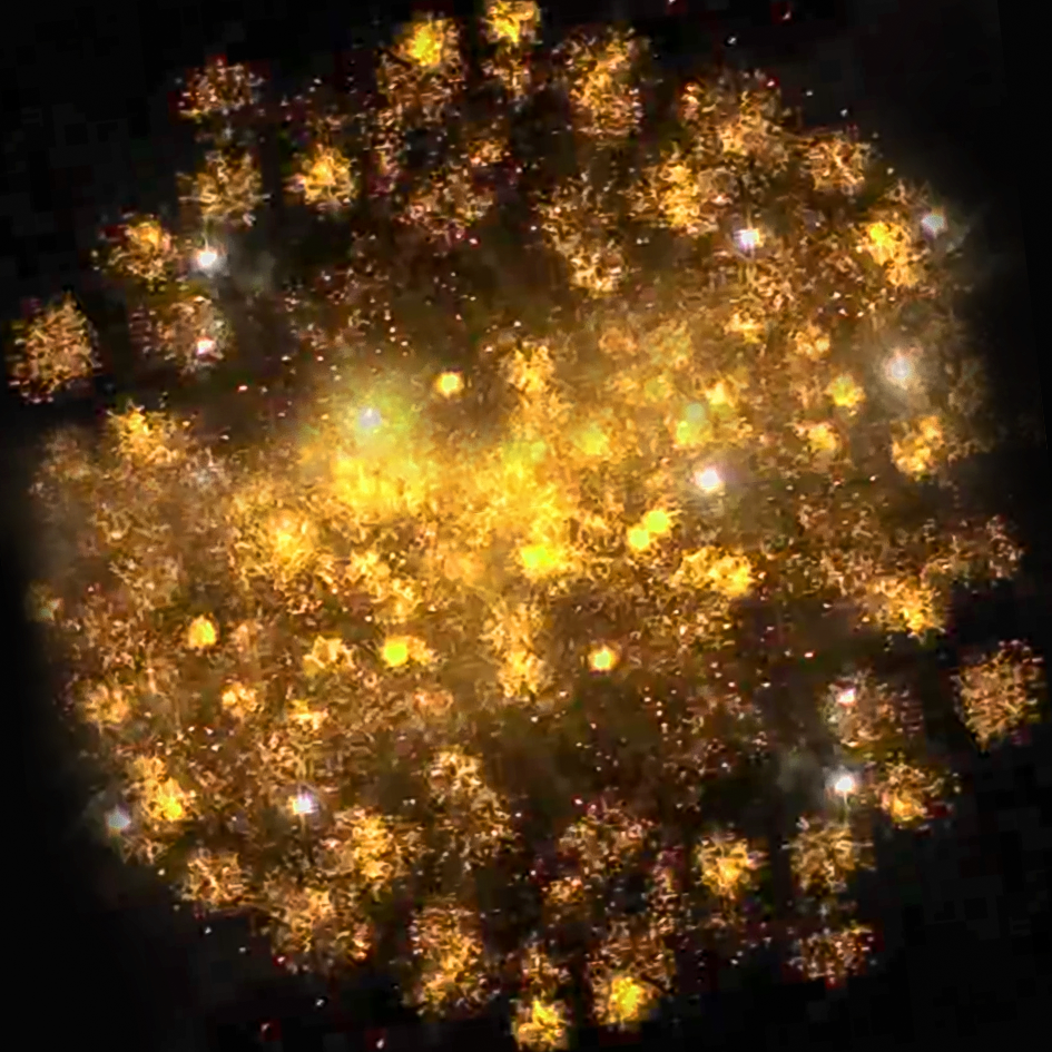 1. золотых искристых форсов и золотых искр, переходящих в красные мерцающие огни;