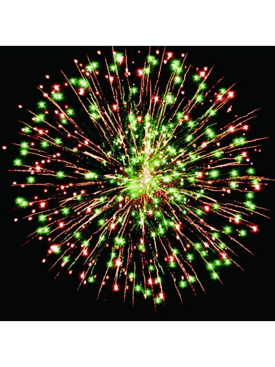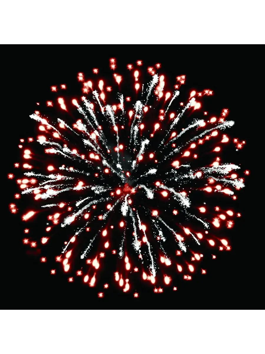 7-8.крупных красных огней и трещащих серебряных искристых форсов, множеством трещащих сфер;